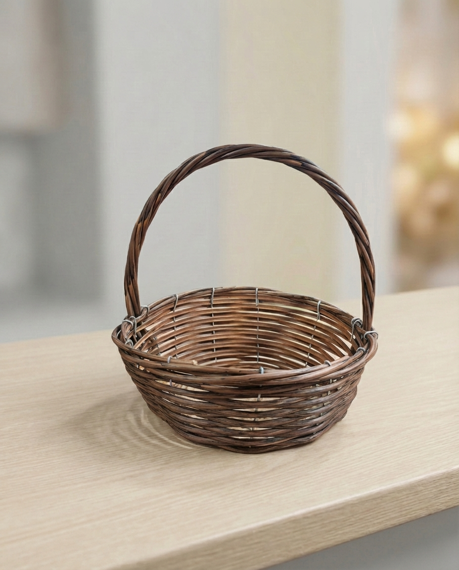 Каркас и плетение скреплены металлической проволокой, что обеспечивает долговечность изделия и предотвращает расплетание даже при активном ежедневном использовании. Корзина сохраняет первоначальный вид годами.