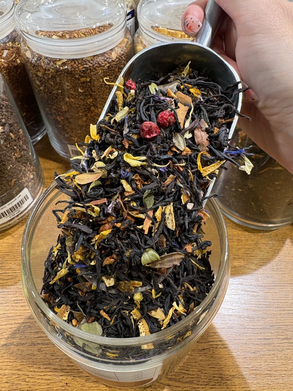 Лесная композиция черного чая с ягодами и листьями брусники дополняется яблоком, корицей и цедрой апельсина в обрамлении соцветий незабудки — северный сад с цитрусовым акцентом.